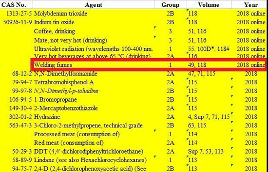 在當前的評估中,焊接煙霧和UV輻射被歸類為“對人類致癌”(第1組)。