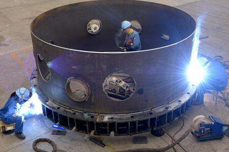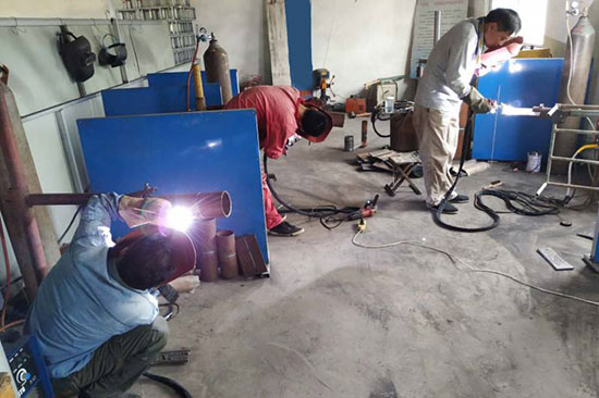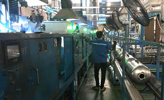 以壓力容器生產企業轉型升級為例。傳統的企業生產焊接車間,在一個工位上,總會看到一幕幕工人頭戴面罩、手握焊槍,在一個罐體內進行著焊接作業,邊上還有一臺焊接設備,而且大部分都是一臺焊接設備需要至少兩個人配合著使用,一個人做操作,另外一個人要跟蹤焊道的焊接,看其是否偏離焊道。