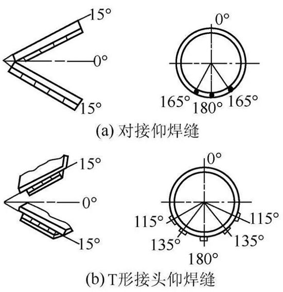 有兩種情況,一種是焊縫傾角在0°~15°,焊接轉角165°~180°的對接焊縫;另一種是角焊縫的焊縫傾角在0°~15°,焊縫轉角115°~180°的仰焊位置施焊的焊縫。