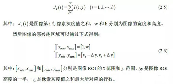 通過觀察圖像看出,激光條紋大致平行于圖像的u 軸,而且激光條紋處像素的灰度值高于圖像中其它像素的灰度值,所以圖像的ROI 可以通過對每行像素灰度值進(jìn)行求和得到: