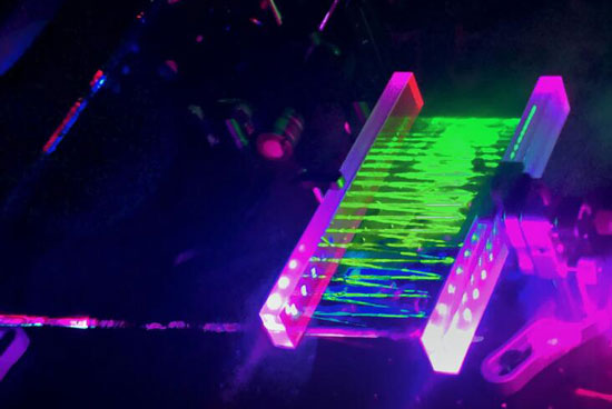 雖然皮秒和飛秒光纖激光器具有許多非凡的質量,但是對于最高平均功率的超快光,人們必須轉向大體積固態激光器。研究人員不僅致力于克服超快激光功率限制,而且還致力于開發從脈沖產生到工藝技術以及實際應用的整個工藝鏈中的技術。使用InnoSlab技術(兩個散熱器之間的矩形晶體,通過準直激光二極管縱向泵浦),已構建了一種超快放大器,該放大器以500 kHz的頻率發射能量略大于1 mJ的壓縮脈沖,平均功率為530 W。使用充氣的Herriott型電池,研究人員已證明脈沖持續時間從590降低到30 fs,而能量損失不到5%。