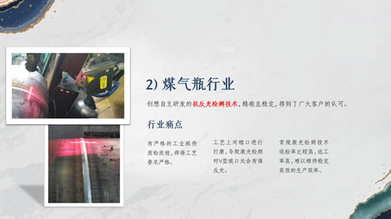 針對環縫焊接行業的各種焊偏問題,我們創想公司推出一款產品叫焊縫跟蹤器,它能實時檢測焊縫位置并且引導焊槍對準焊縫進行焊接,現在已經廣泛應用于以下這些行業,口碑優良。