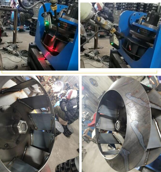 由于風(fēng)機機殼與葉輪的焊接質(zhì)量直接決定的風(fēng)機的質(zhì)量和美觀,傳統(tǒng)的自動焊接設(shè)備因為無法實時跟蹤焊縫,所以無法實現(xiàn)自動焊接,基本是依靠人工焊接。