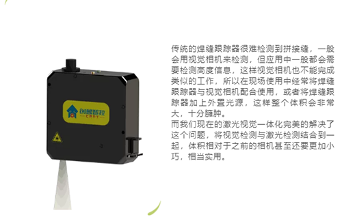 傳統(tǒng)的焊縫跟蹤器很難檢測(cè)到拼接縫,一般會(huì)用視覺(jué)相機(jī)來(lái)檢測(cè),但應(yīng)用中一般都會(huì)需要檢測(cè)高度信息,這樣視覺(jué)相機(jī)也不能完成類似的工作,所以在現(xiàn)場(chǎng)使用中經(jīng)常將焊縫跟蹤器與視覺(jué)相機(jī)配合使用,或者將焊縫跟蹤器加上外置光源,這樣整個(gè)體積會(huì)非常大,十分臃腫。